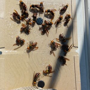 当社ではスズメバチの巣から離れているスズメバチもなるべく捕獲するようにしています。